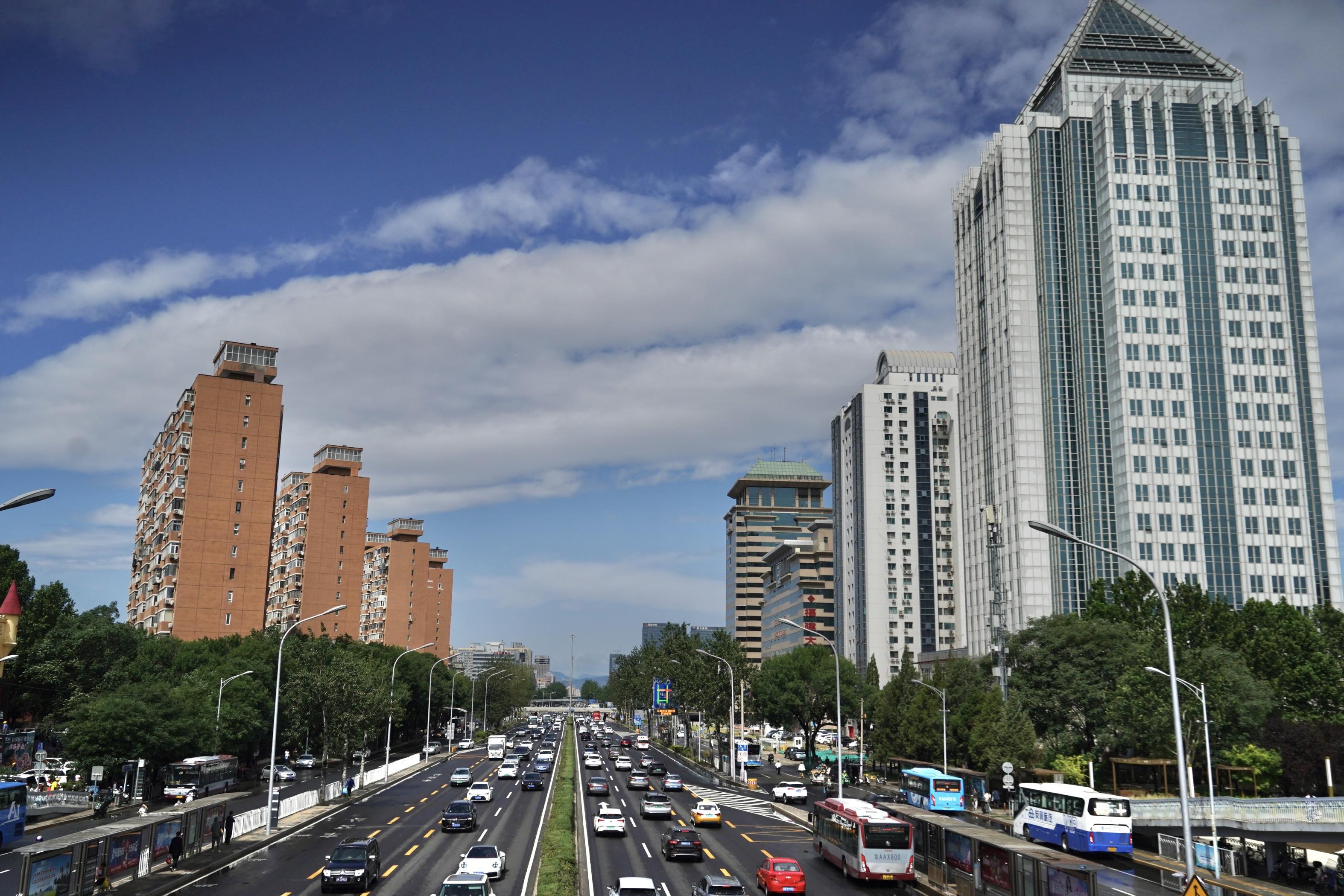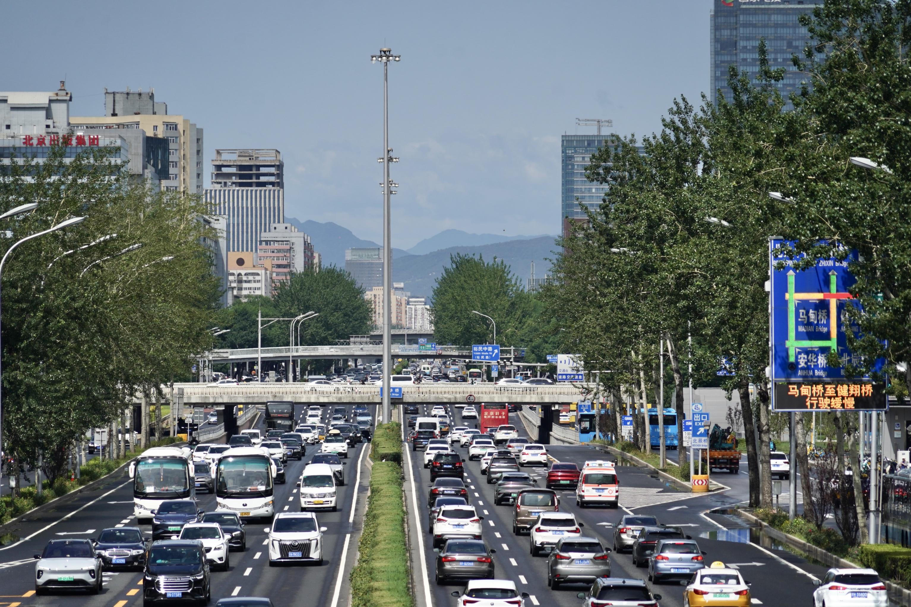 6月15日上午,北京雨过天晴,空气通透,从北三环一眼望见西山。